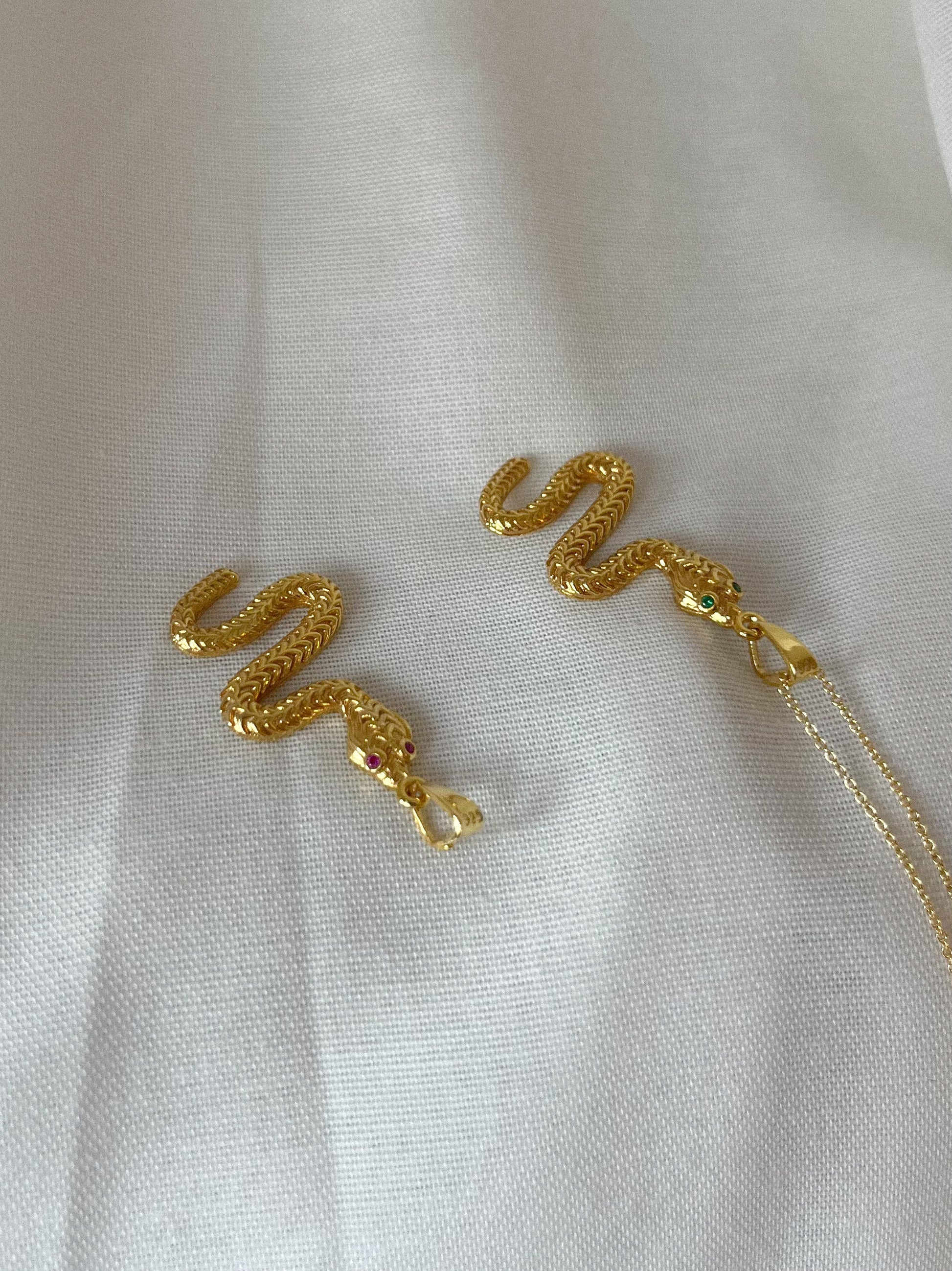 Material: Plata de Ley 925 chapada en oro de 18k. Ojos de circonitas, a elegir entre color verde y rojo.