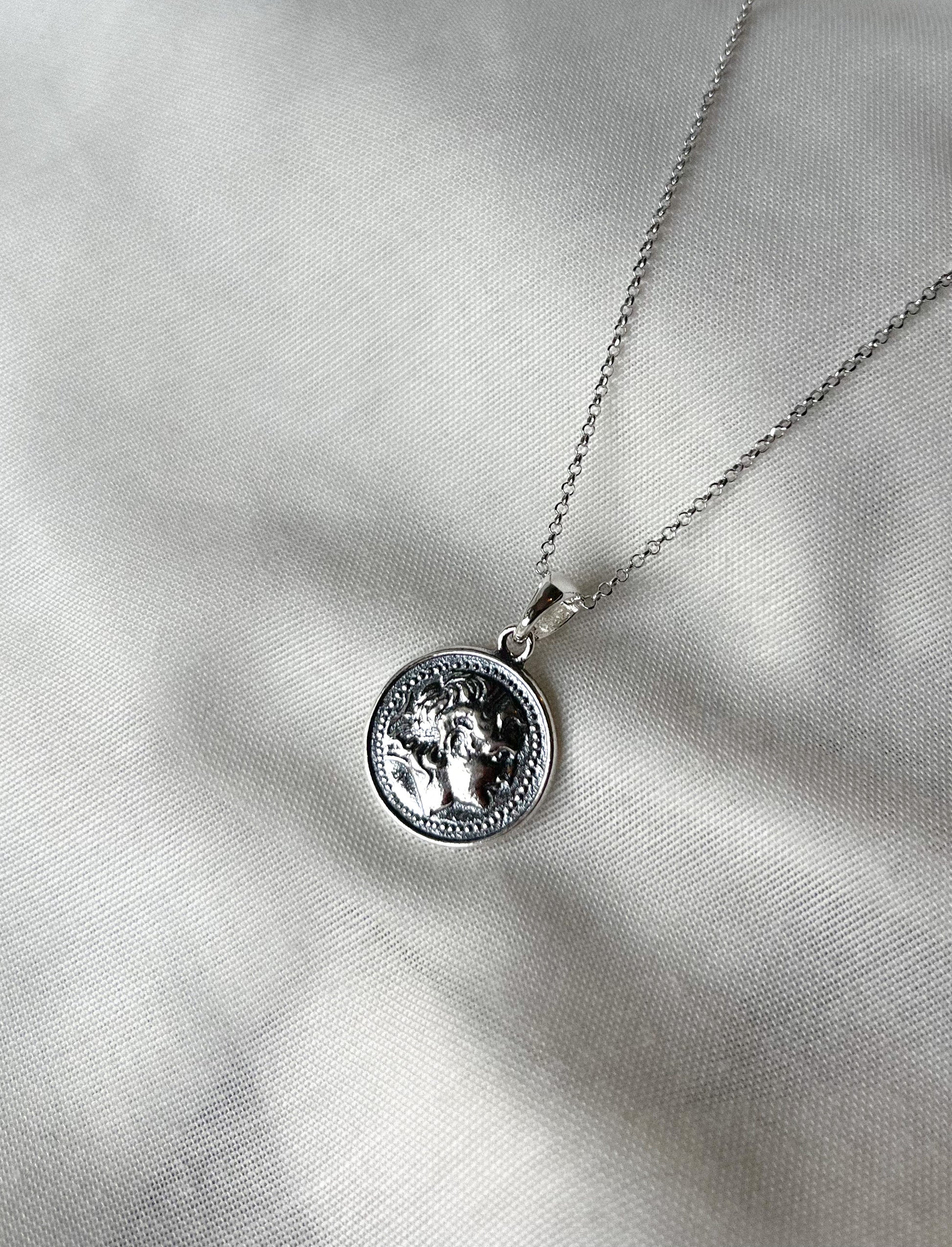 Moneda de Oriente Medio que representa a Alejandro Magno, conquistador de Egipto, con cuernos del dios egipcio Amón en su cabeza. Esta deidad era un símbolo de supremacía.